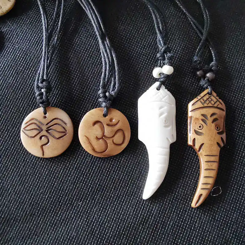 Amulette tibétaine pour homme, Yak Sophia, Ganesh sculpté OM avec ULréglable JOTNL0.25