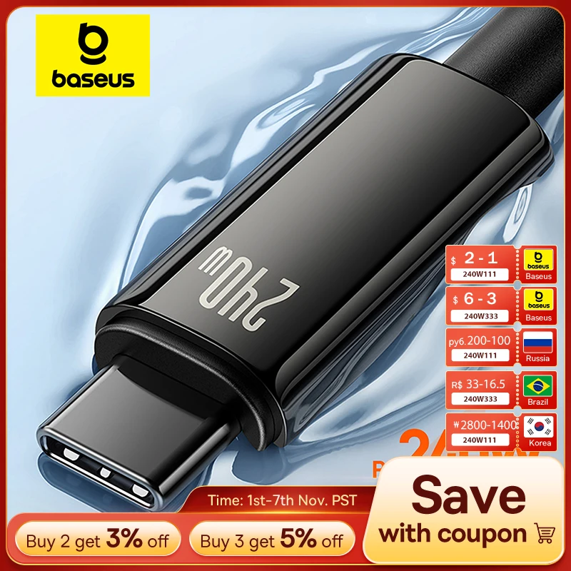 Bas192.- Câble USB Type-C 240W pour recharge rapide, cordon de chargeur USB-C pour iPhone 16, 15 Plus Pro Max, Macbook, Xiaomi et Samsung