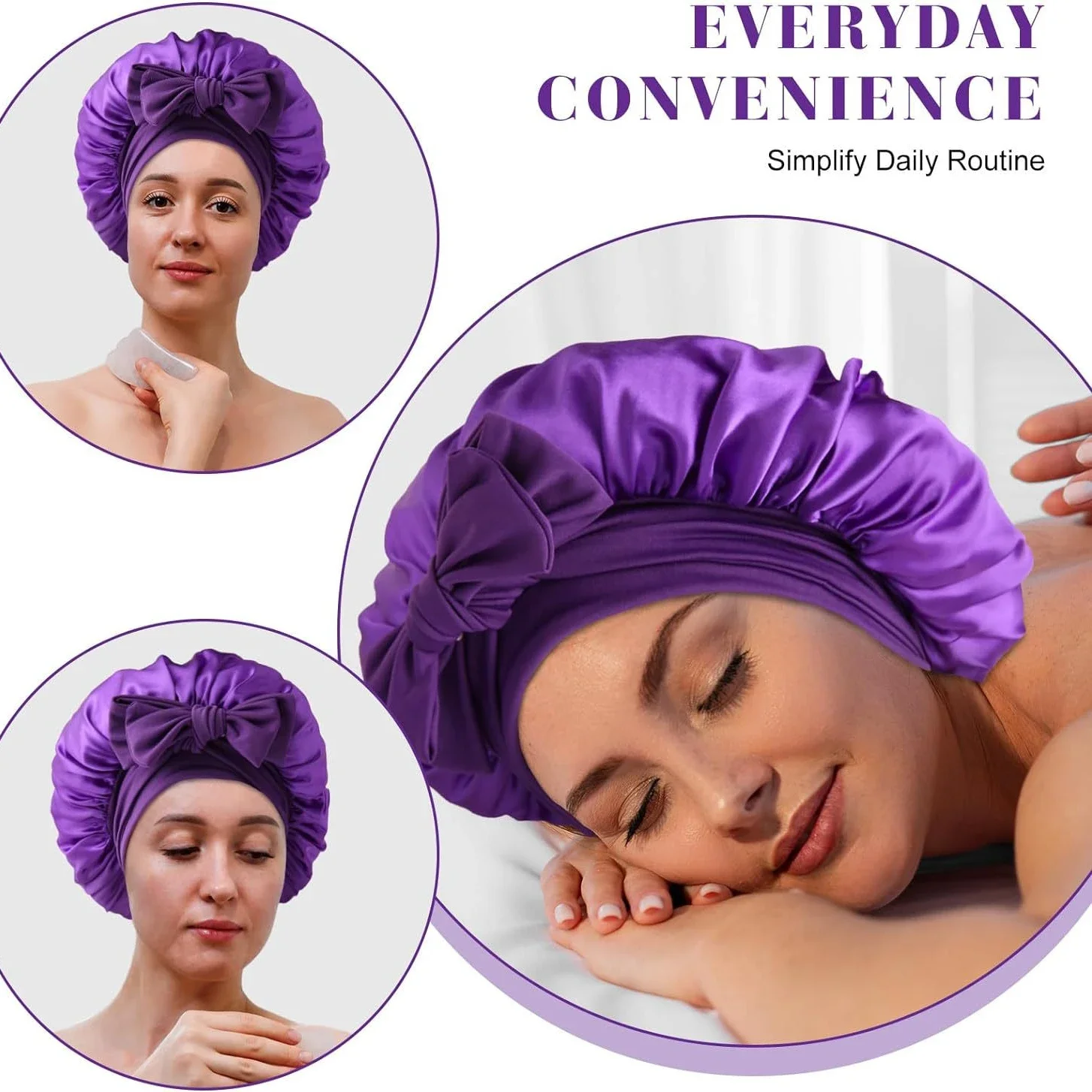Bonnet de Couchage en Satin avec Nministériels d pour Femme, avec Bande Extensible, Bonnet de Douche de Nuit artificiel astique, Réglable, Solide, Couvre-Tête, Turban