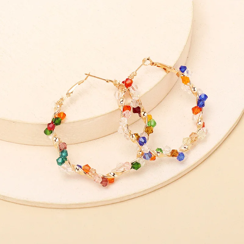 Boucles d’oreilles créoles en cristal coloré aléatoire pour femmes, grand cercle rond, déclaration, fête de mariage, bijoux bohèmes, nouvelle mode