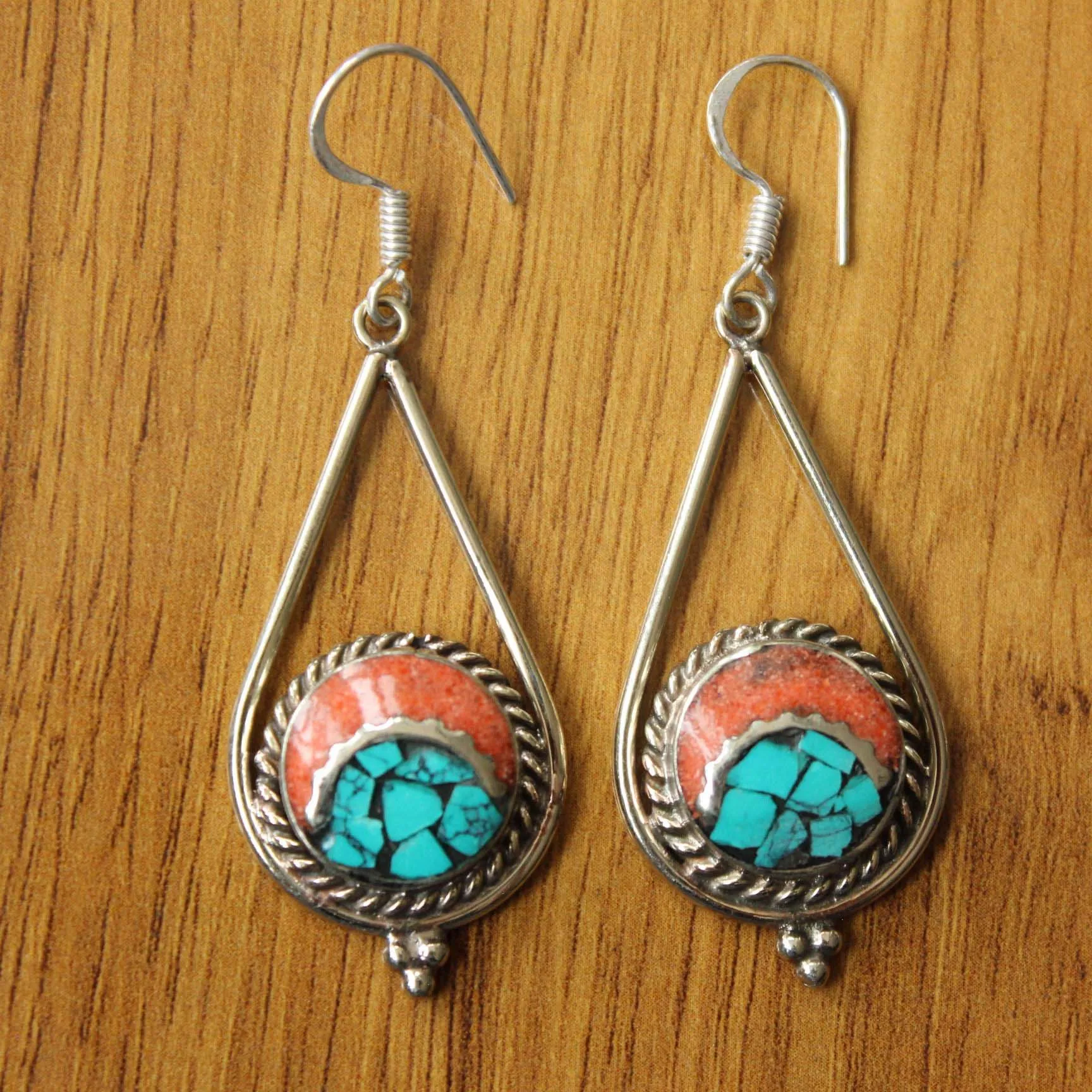 Boucles d’oreilles goutte d’eau du népal pour femmes, ethnique tibétaine Lapis Turquoises, pierre pendante, nouvelle collection, ER175