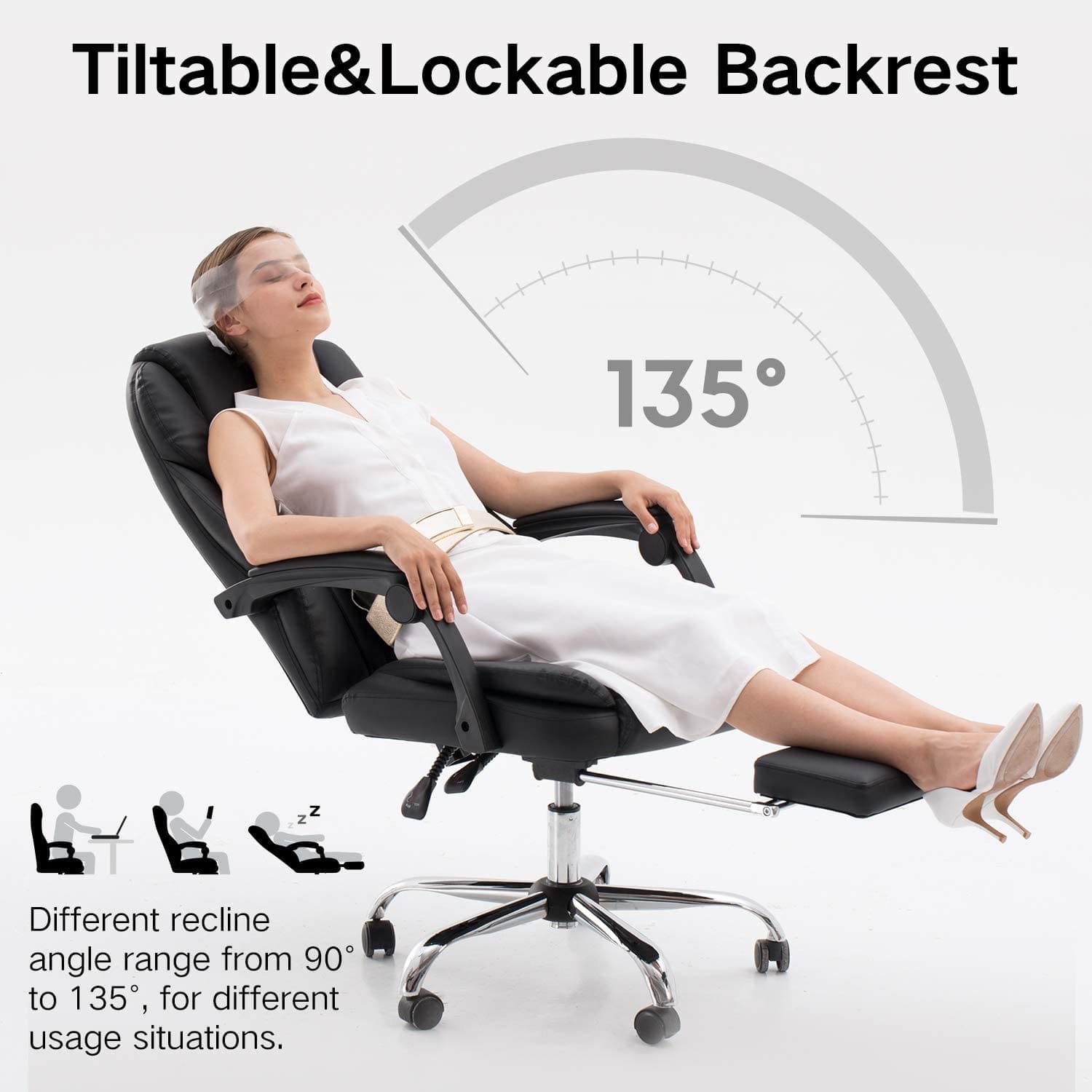 - 【FONCTION UNIQUE D’INCLINAISON】 Le dossier de ce fauteuil a une fonction d’incliner unique de 135 ° qui peut être verrouillée, ce qui signifie que vous pouvez vous allonger dans ce fauteuil pour vous reposer au lieu de dormir sur la table lorsque vous êtes fatigué du travail.