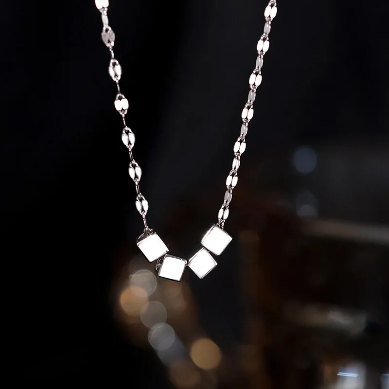 LByzHan-Collier ras du cou tube carré en argent regardé 925 pour femme, bijoux géométriques simples et brillants, bijoux de fête