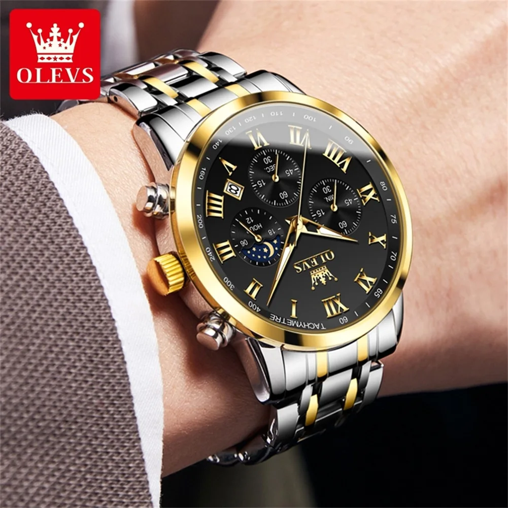 OLEVS-Montre à Quartz Étanche pour Homme, Phase de Lune, Circulation DNonomique, Calendrier, Montre-Bracelet Lumineuse, Marque de Luxe, Original