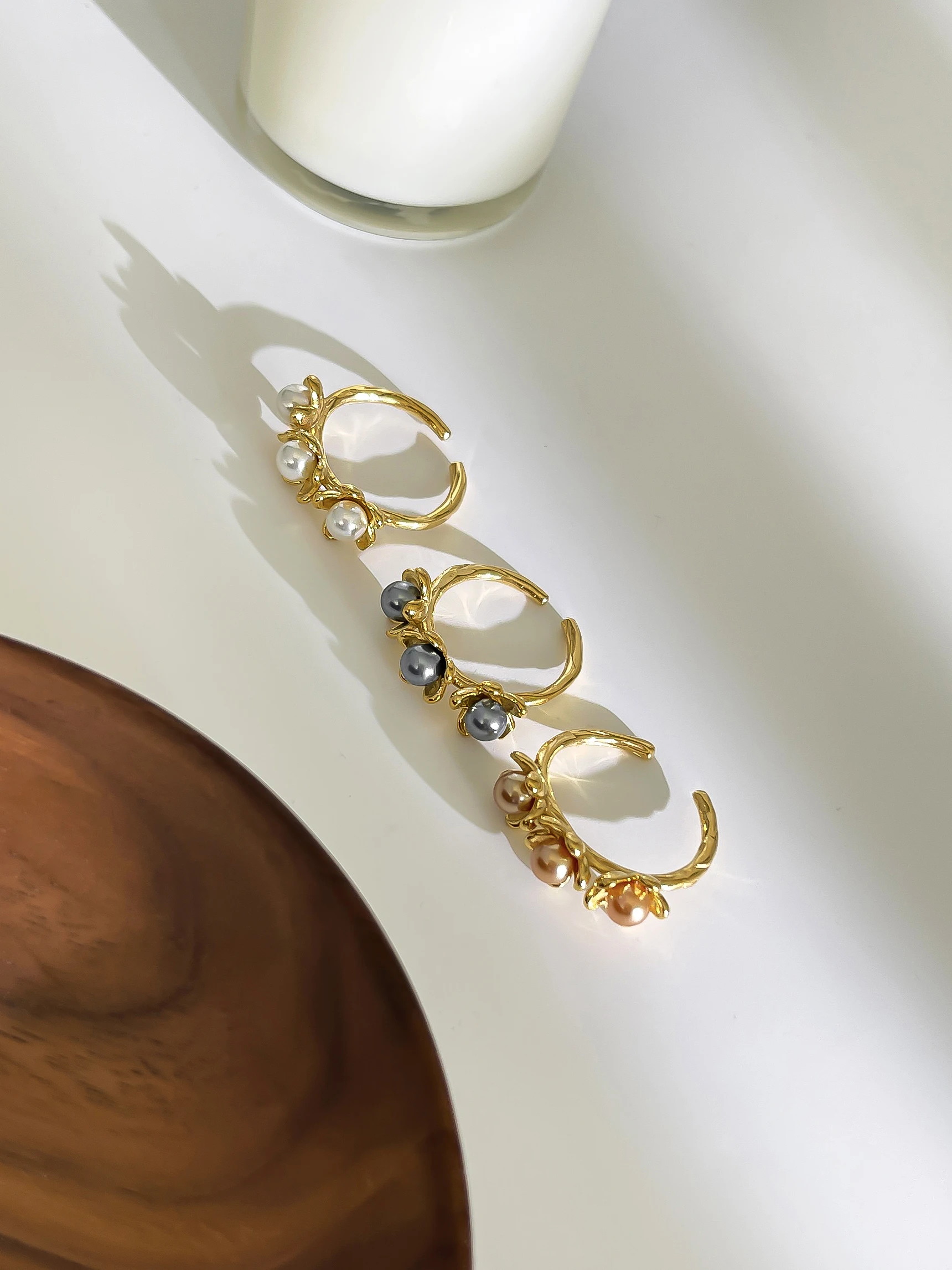 Peri’sbox-Bague Ouverte en Acier Inoxydable Plaqué Or pour Femme, Anneau Ajustable, Perle et Fleur, Cadeau Bijoux Carillon, Doux et Mignon, 216.239.