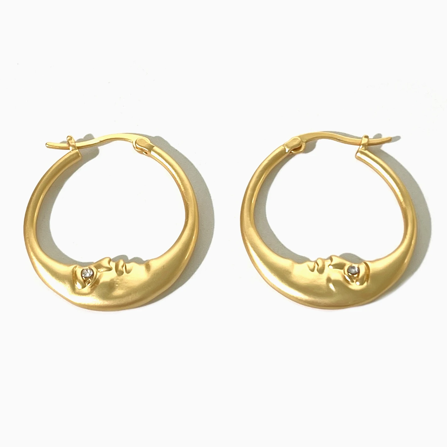 Peri’sbox-Boucles d’oreilles créoles vintage pour femme, croissant de lune, plaqué or et argent, Huggie Hoop, bijoux rétro, meilleurs cadeaux, mode, mn 256