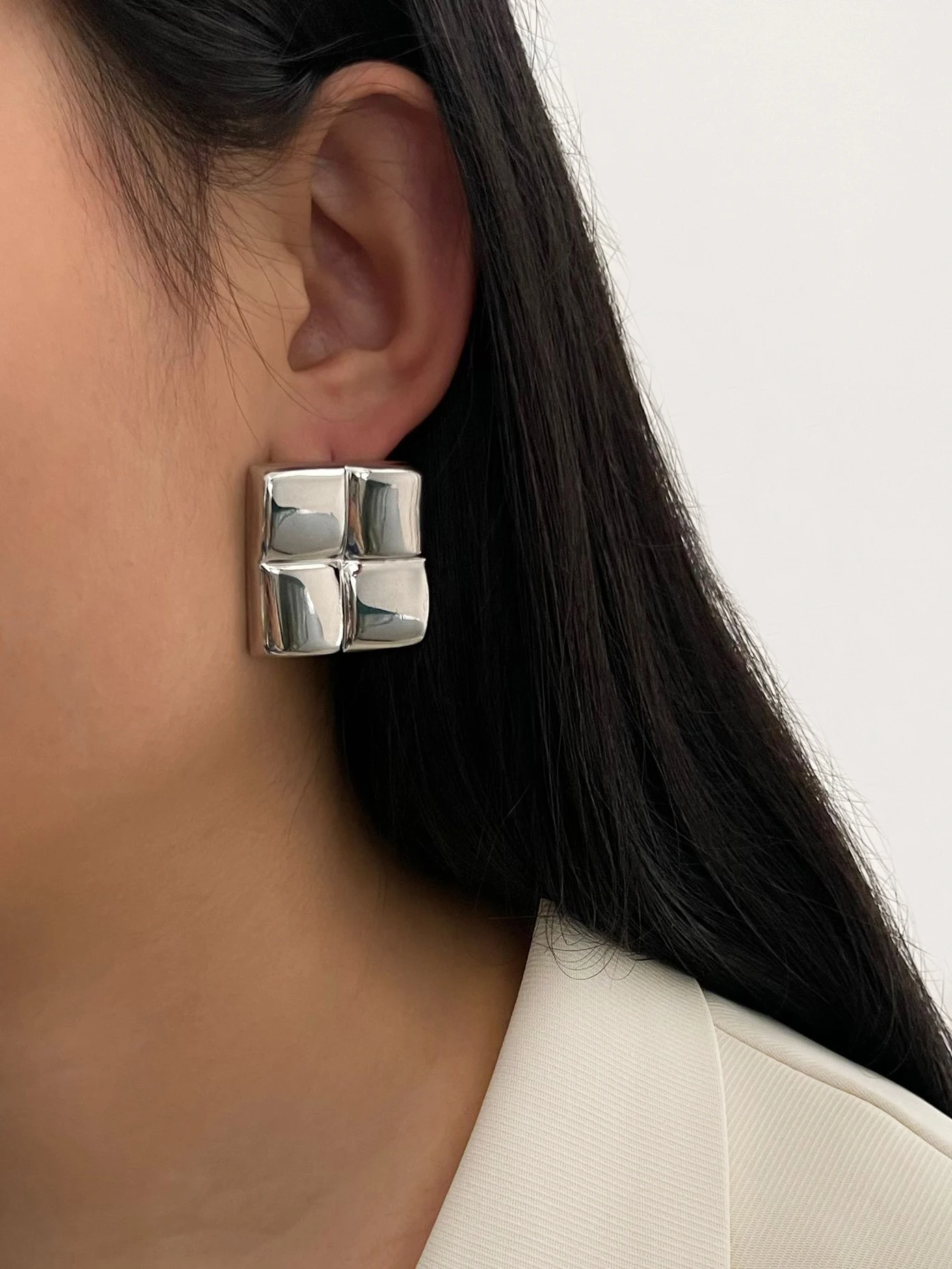Peri’sbox-Boucles d’Oreilles Géométriques Plaquées Argent pour Femme, Boucles d’Oreilles Circulaires Carrées, Déclaration Punk, ix, Accessoires de Mode, Exagéré
