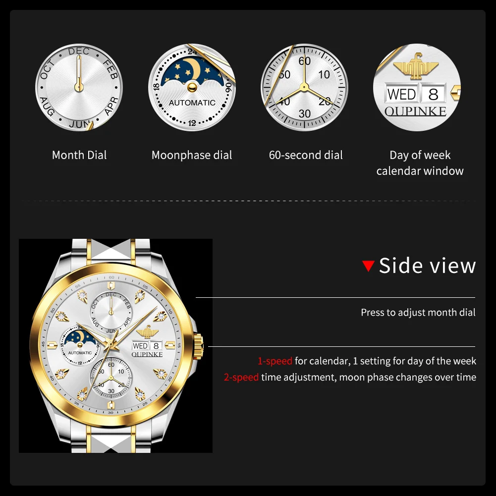 PINKE-Montre-bracelet étanche pour homme, montres vissées, miroir saphir, phase de lune, date, semaine, marque supérieure, mode de luxe