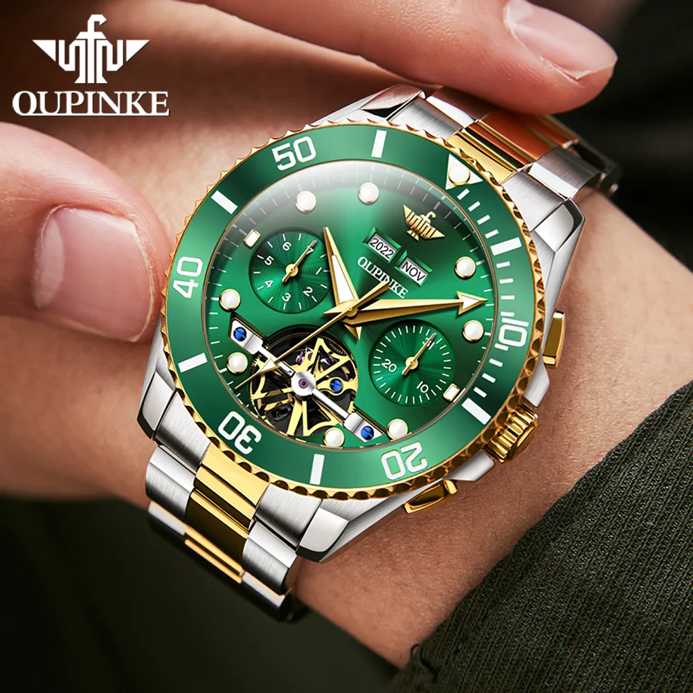 PINKE-Montre étanche pour homme, vissée, bracelet en acier inoxydable, surface miroir saphir, luxe, année, mois, semaine, calendrier, original