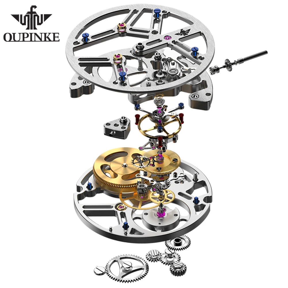 PINKE-Montre Mécanique existent pour Homme, Tourbillon, Mouvement, Étanche, Bande en Silicone, Creux, Vis, Top Marque, Original